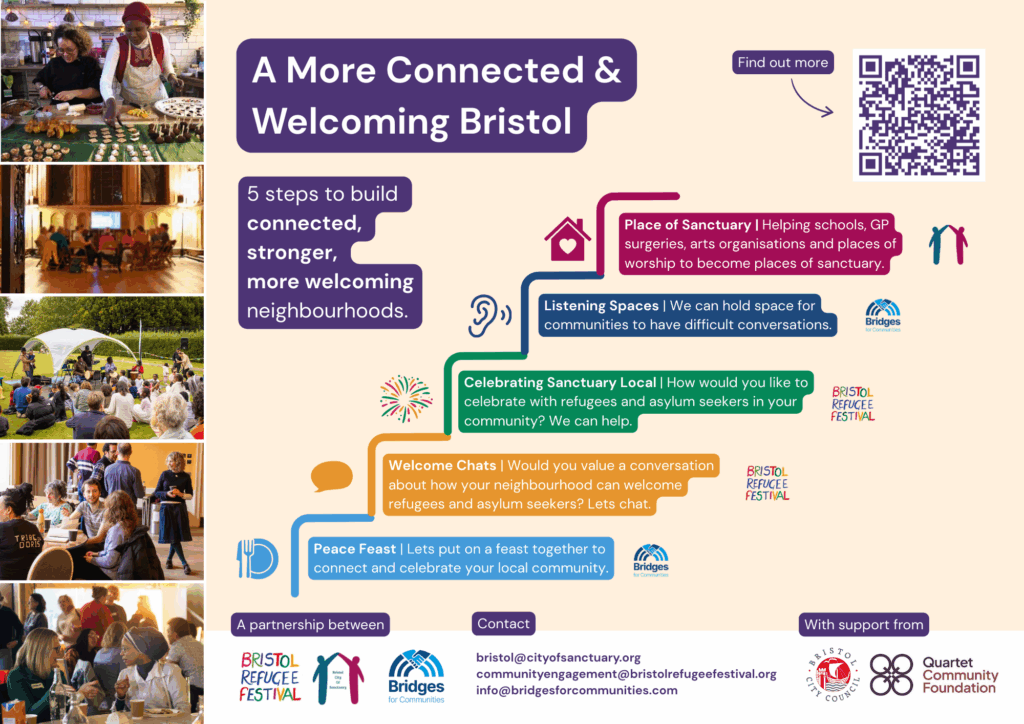 Bristol City of Sanctuary, Bristol Refugee Festival, and Bridges for Communities are working with community groups, schools, cafes, visitor attractions, GP surgeries, arts organisations, and places of worship all across Bristol.